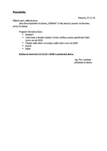 Pozvánka na členskou schůzi 12.12.2019